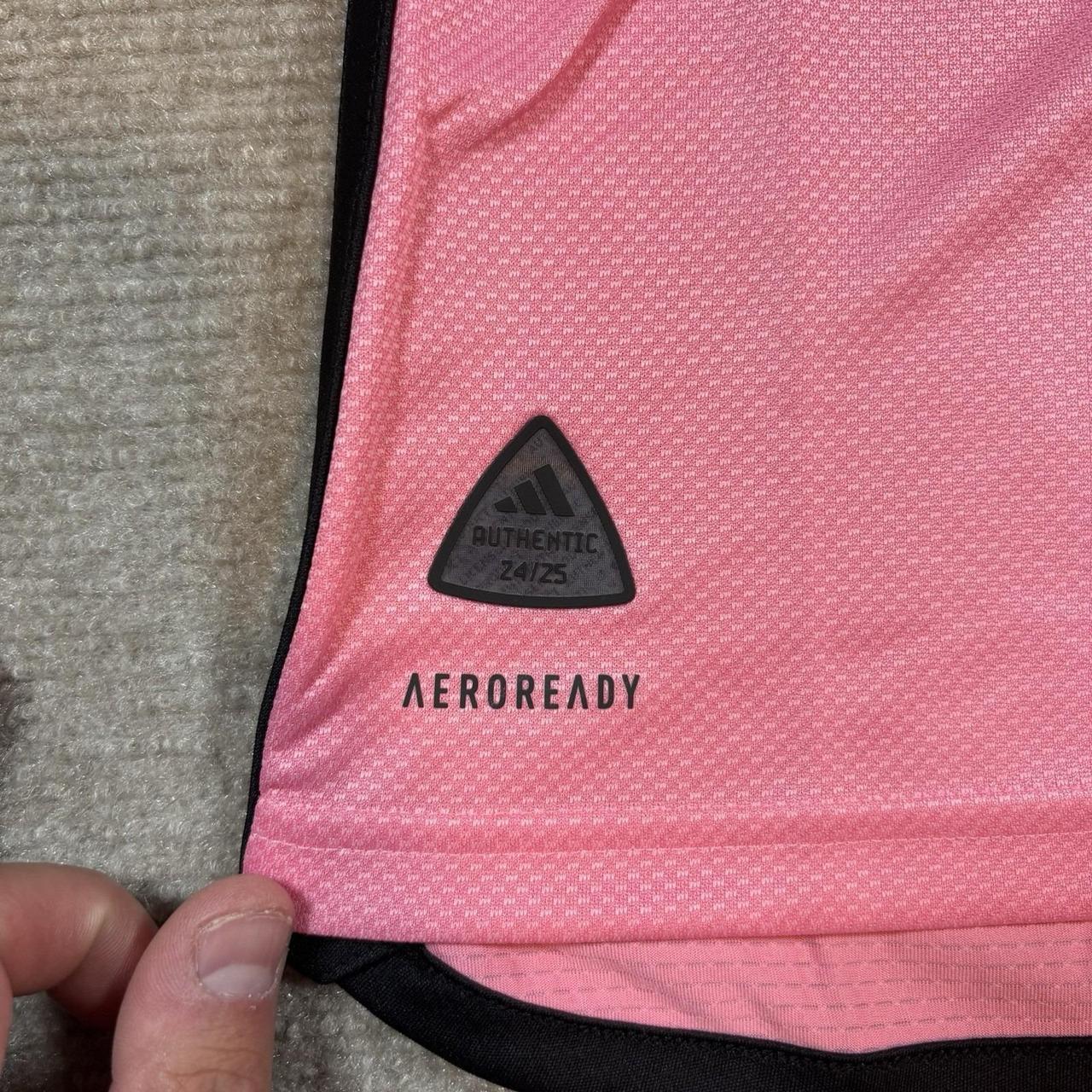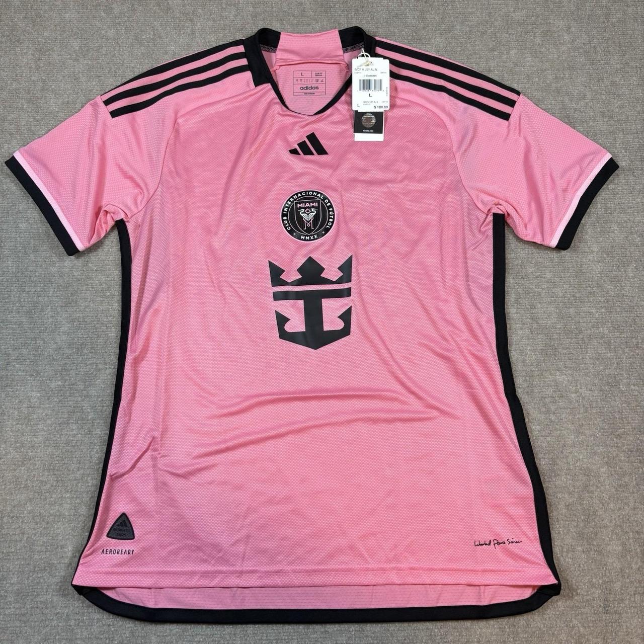 The Adidas Lionel Messi Inter Miami Home Jersey for the 24/25 season is a stylish and authentic piece of fan apparel for soccer enthusiasts. Officially licensed by Major League Soccer (MLS), this slim fit jersey features the iconic pink color representing Inter Miami.