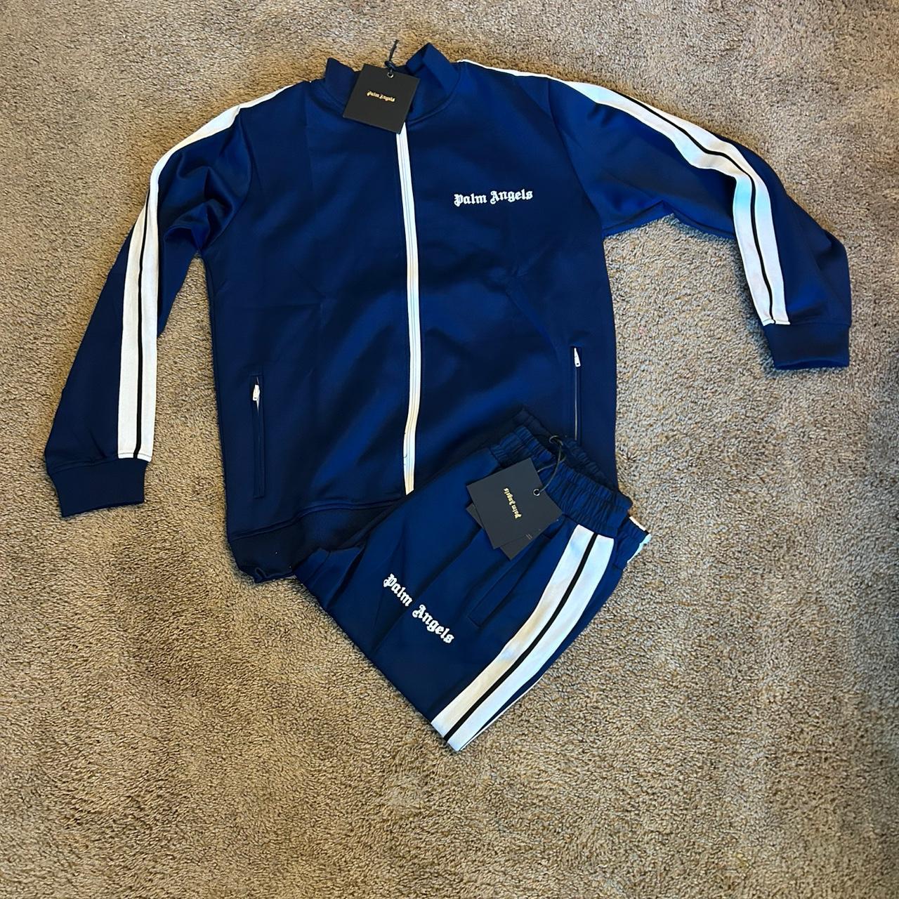 tracksuit, velour, navy blue, athletic, sporty, striped, casual, streetwear, comfortable.